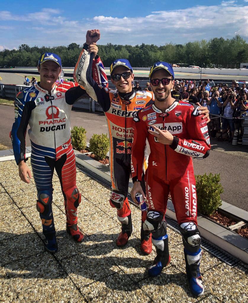 #CzechGP 2019: подиум MotoGP Теги: MotoGP, Андреа Довициозо, Джек Миллер, Марк Маркес, подиум MotoGP, фотоGP Дата: 04.08.19 Источник: По материалам официального пресс-релиза Редактор: Все о мире MotoGP