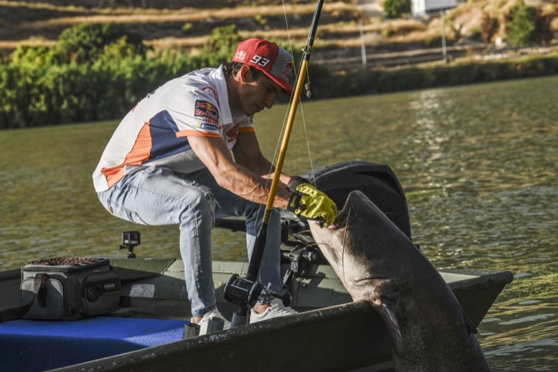 Марк Маркес провел гонку MotoGP ГП Арагона 2019 в доминирующем стиле и позволил себя на последних метрах дистанции представить фанатам победу как отличный улов. Эта отсылка на недавнюю рыбалку с его братом Алексом.