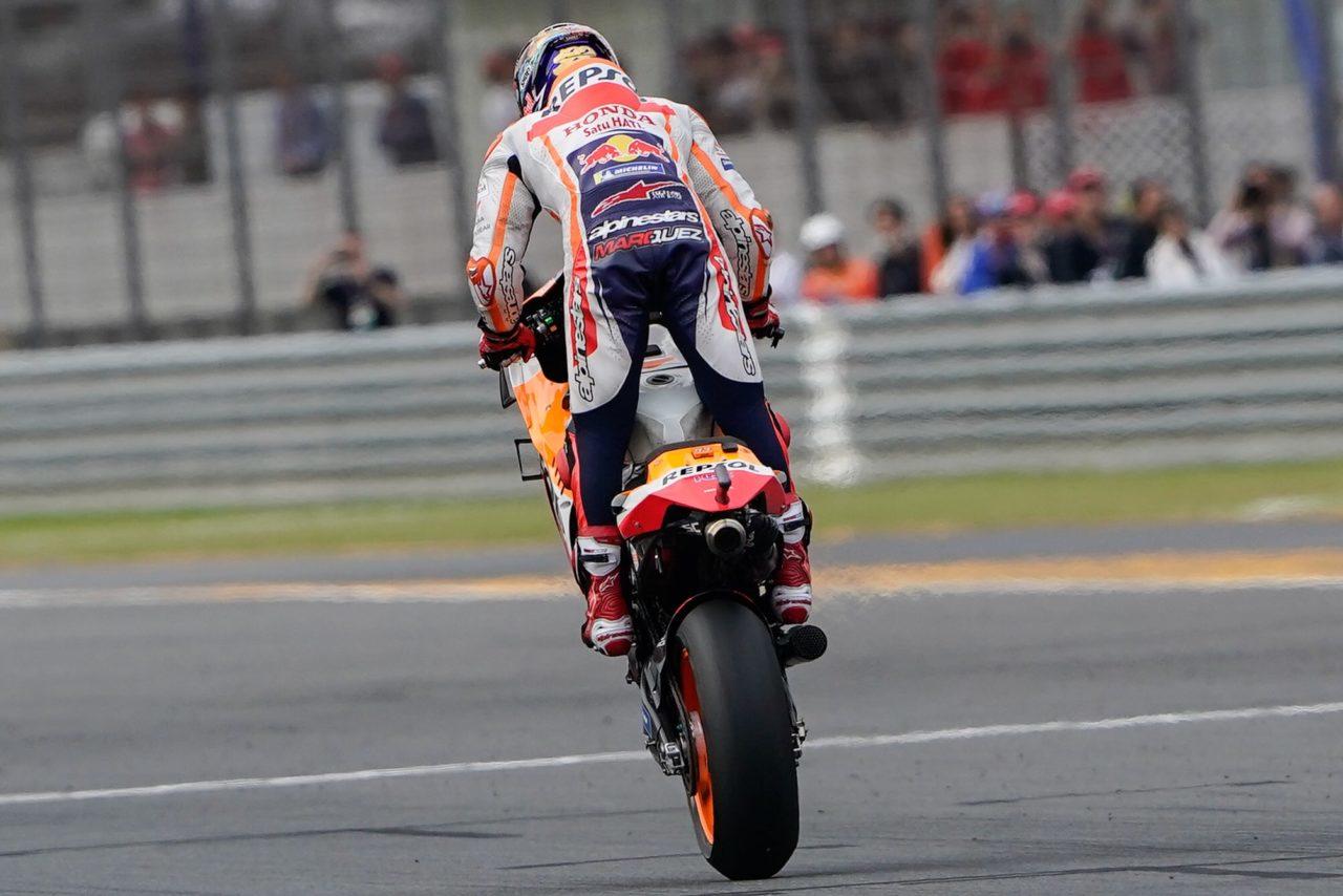 Марк Маркес выглядел счастливым после гонки MotoGP Гран-При Японии. Еще бы! Пилот Repsol Honda Team выиграл 4-ю гонку подряд и принес заводу Honda победу в Кубке конструкторов. Кроме того, для испанца эта победа стала 54-й в премьер-классе, и он сравнялся с легендой Миком Дуэном.