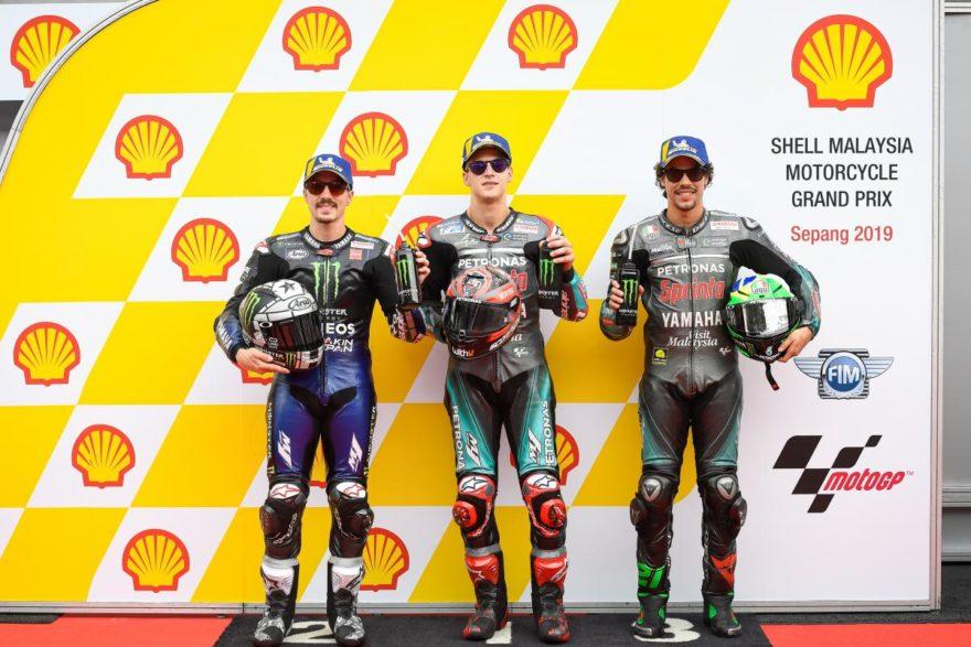Субботняя битва за лучшее место на стартовой решетке ГП Малайзии завершилась победой Фабио Квартараро. Дебютант MotoGP заполучил 5 поул-позицию сезона, причём последнюю — в домашней гонке малазийской команды Petronas Yamaha SRT. С 3 места стартует его партнёр Франко Морбиделли, и это 7 раз в сезона, когда «Ямахи» #20 и #21 поделили 1-й ряд.