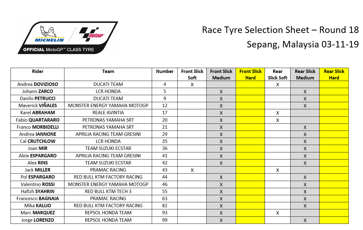 #фотоGP: выбор шин на ГП Малайзии 2019 Теги: MotoGP, Michelin, фотоGP Дата: 05.11.19 Источник: По материалам официального пресс-релиза Редактор: Индиан