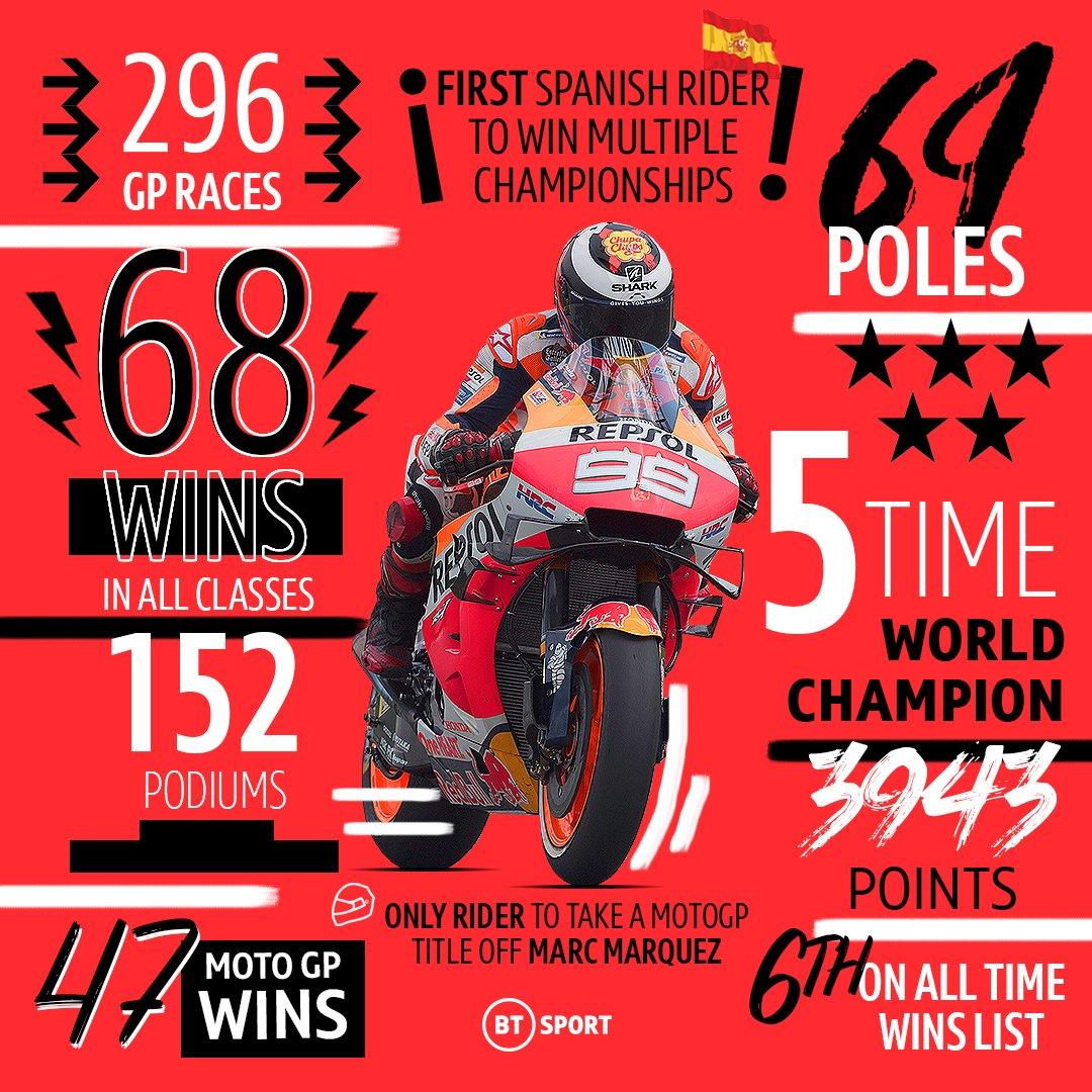 Лоренсо в Гран-При: 18 сезонов, 297 гонок, 68 побед и 5 титулов