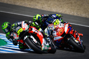 Как бы ни было, эта скорость исчезла с возвращением чемпионата в Европу. Пока MotoGP гостил «за границей» на крупных треках (4,8 км у Рио Ондо, 5,3 км у Лосаила, 5,5 км у Трассы Америк), не обделённый лошадиными силами RC213V хорошо обходился и без управляемости. Сложности Кэла начались с «маленького» Хереса, и в том или ином качестве присутствовали до конца сезона.