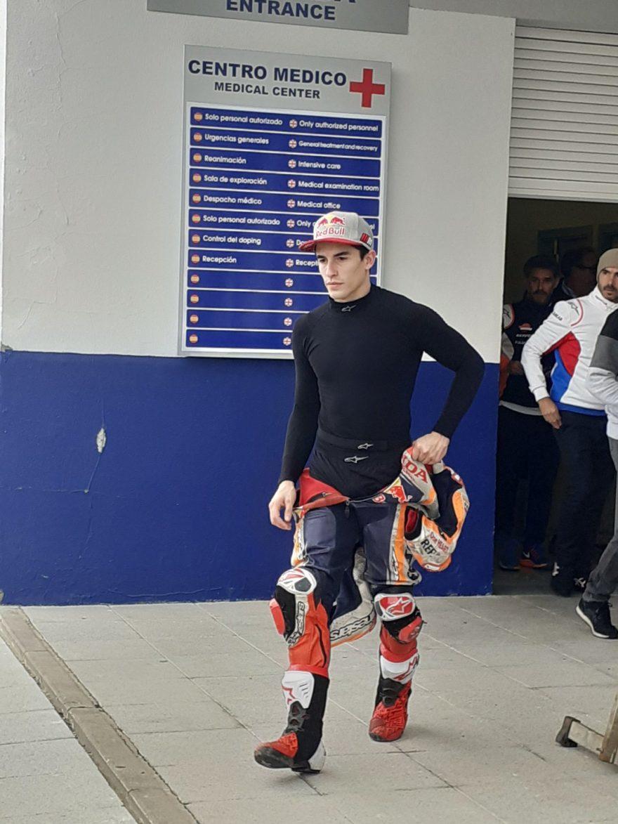 Марк Маркес упал на низкой скорости во время первого дня официальных тестов MotoGP 2020 года в Хересе. Но испанец не очень удачно влетел в гравий и в итоге отправился в медицинский центр, чтобы проверить правое плечо. К счастью, действующий чемпион мира не травмировался серьезно и смог вернуться к тестам нового прототипа Honda RC213V. В итоговом протоколе Марк занял шестое место и уступил 1.096 сек. лидеру Маверику Виньялесу.