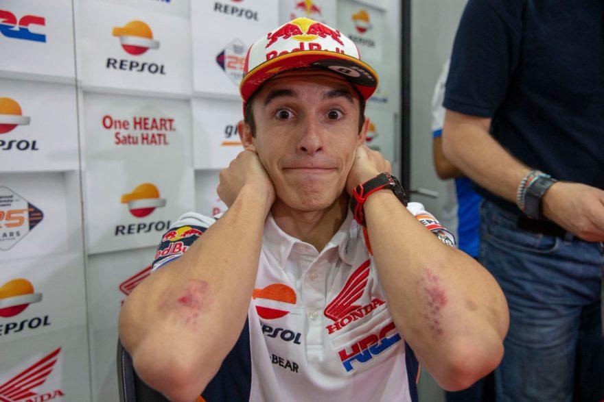 Что-то подобное ему предстоит и теперь, только из-за другого плеча. Во вторник в Хересе Марк заметил, что неприятные ощущения в правом начали проявляться до ГП Японии. Испанец падал на него в крупных авариях на СП-2 ГП Арагона и СП-1 ГП Таиланда, после которой даже покинул трек, чтобы съездить на осмотр в больницу Бурирама. Еще хуже стало на квалификации ГП Малайзии: из-за слишком резкого добавления газа на остывших покрышках байк высоко подкинул его в воздух, Марк снова сильно ударился о землю. Остальную часть уик-энда он провёл с болевыми ощущениями, в том числе с подвывихом правого плеча.