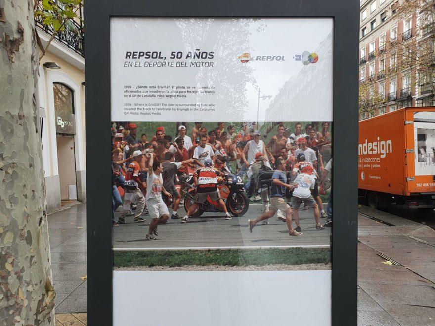 Прохожие, гуляющие по модной, занятой дорогими магазинами улице Калле Серрано столичного испанского города Мадрид, с 17 по 23 декабря автоматически попадают на уличную выставку Repsol — 50 años en el deporte del motor («Репсоль: 50 лет в спорте моторов»). На стендах, которые начинаются на пересечении центральных улиц Серрано и Гойя, изображены фотографии из спортивной истории нефтегазовой компании Repsol.