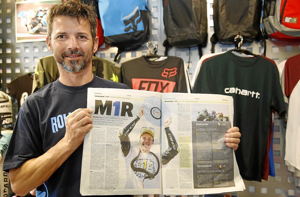 Жоан-старший гордо демонстрирует разворот газеты о победе сына в Moto3. Жоан-младший красиво стал чемпионом 2017 года после победы на ГП Австралии