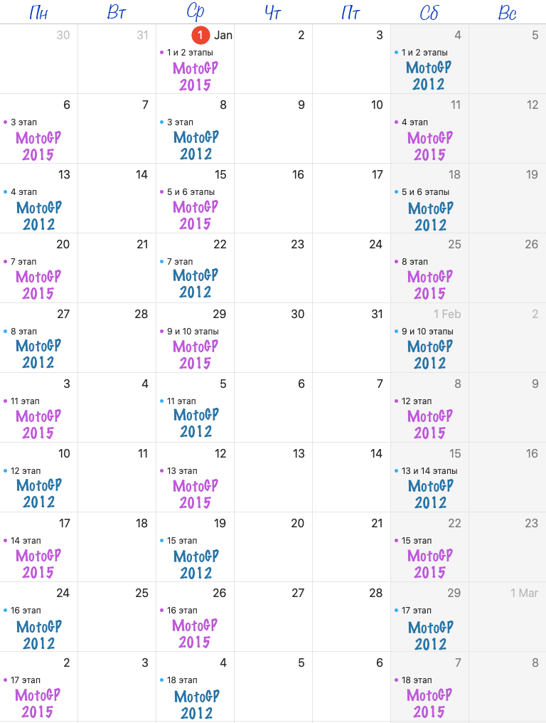 На этот раз мы решили порадовать вас трансляцией сезонов MotoGP 2012 и MotoGP 2015. Каждую неделю будет по три-пять гонок! Подробное расписание смотрите ниже.