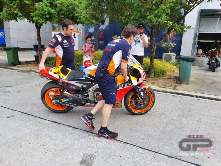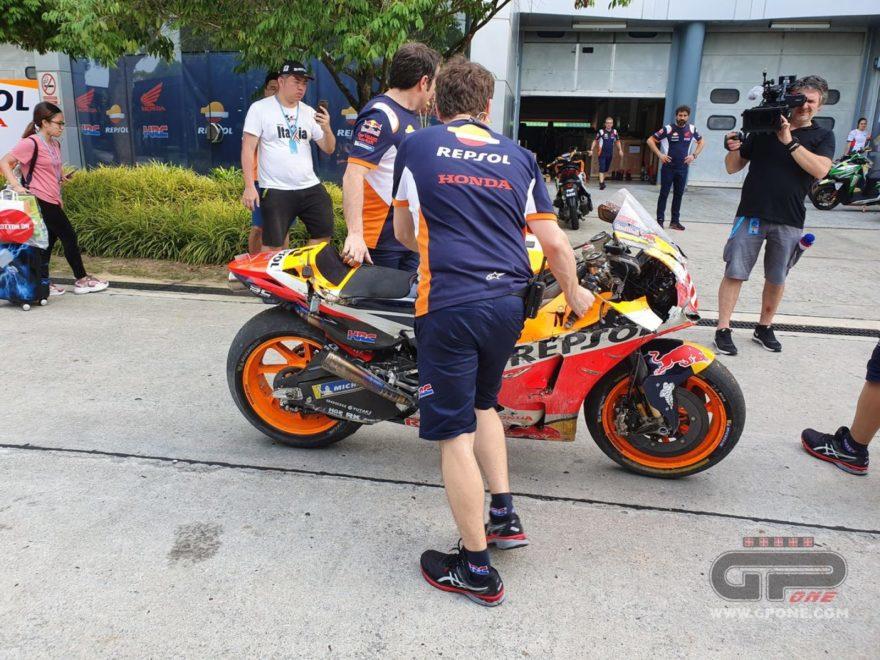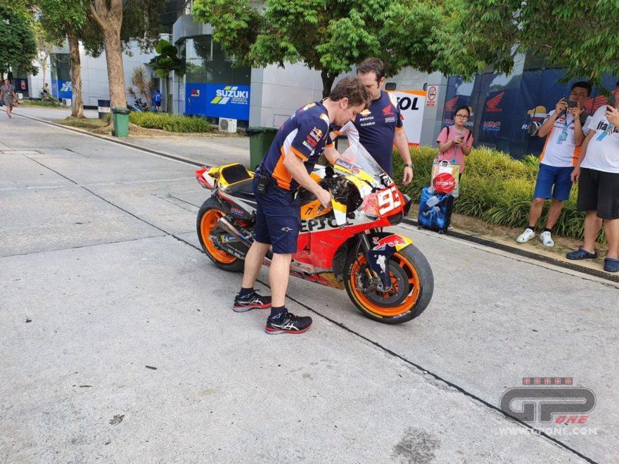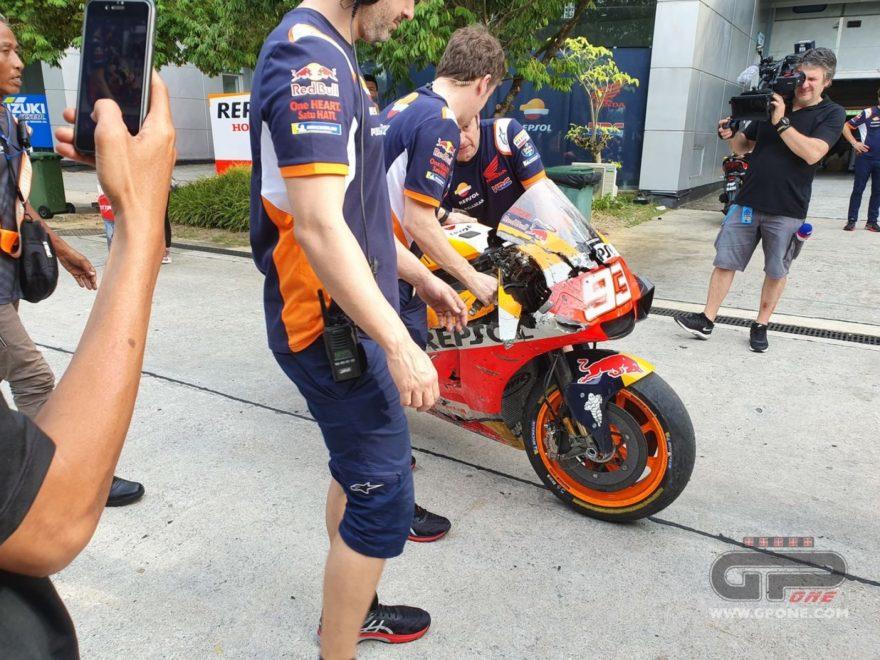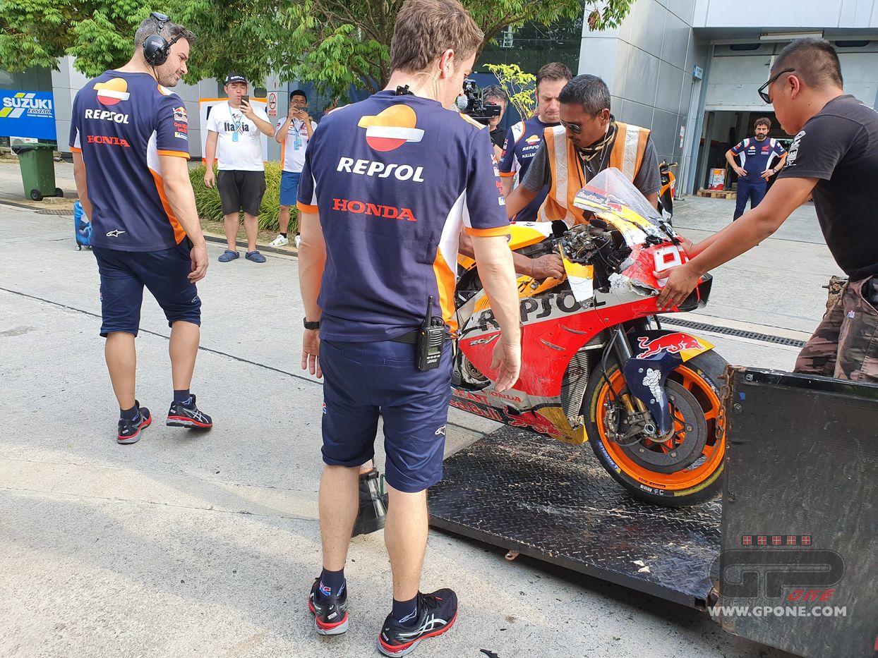 Второй день официальных тестов MotoGP в Сепанге прошел не идеально для Марка Маркеса. Пилот Repsol Honda разбился в самом конце тестовой сессии. К счастью, гонщик не травмировался. А вот механикам придется потрудиться, чтобы восстановить мотоцикл к завтрашнему дню.