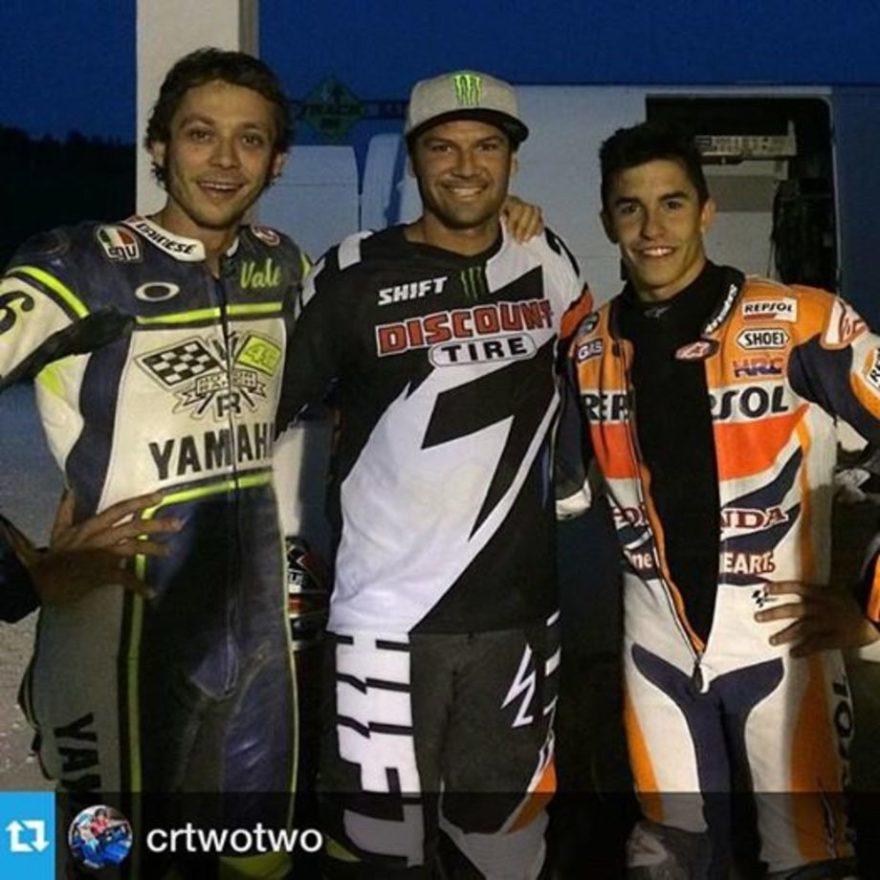После Гран-При в Мизано несколько топовых райдеров были на ранчо у Росси — поездить на внедорожных байках. Этими райдерами были [Брэдли] Смит, Чад Рид и так далее, и Марк тоже.