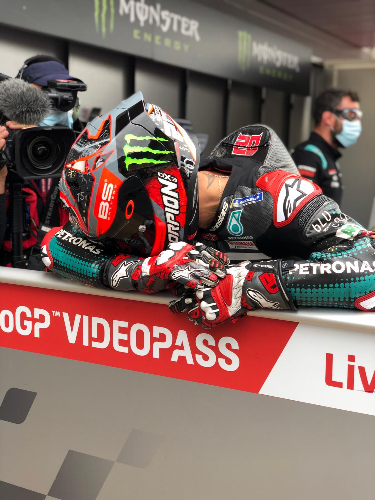 После побед в первых двух гонках MotoGP 2020 года в Хересе Фабио Квартараро больше ни разу не забирался на подиум. Сегодня пилот Petronas Yamaha SRT исправил ситуацию, выиграв ГП Каталонии. Заработанные сегодня 25 очков позволили французу вырваться вперёд в личном зачёт, но Жоан Мир совсем рядом – всего в восьми очках. Даже в гонке пилот Suzuki финишировал прямо за Фабио.