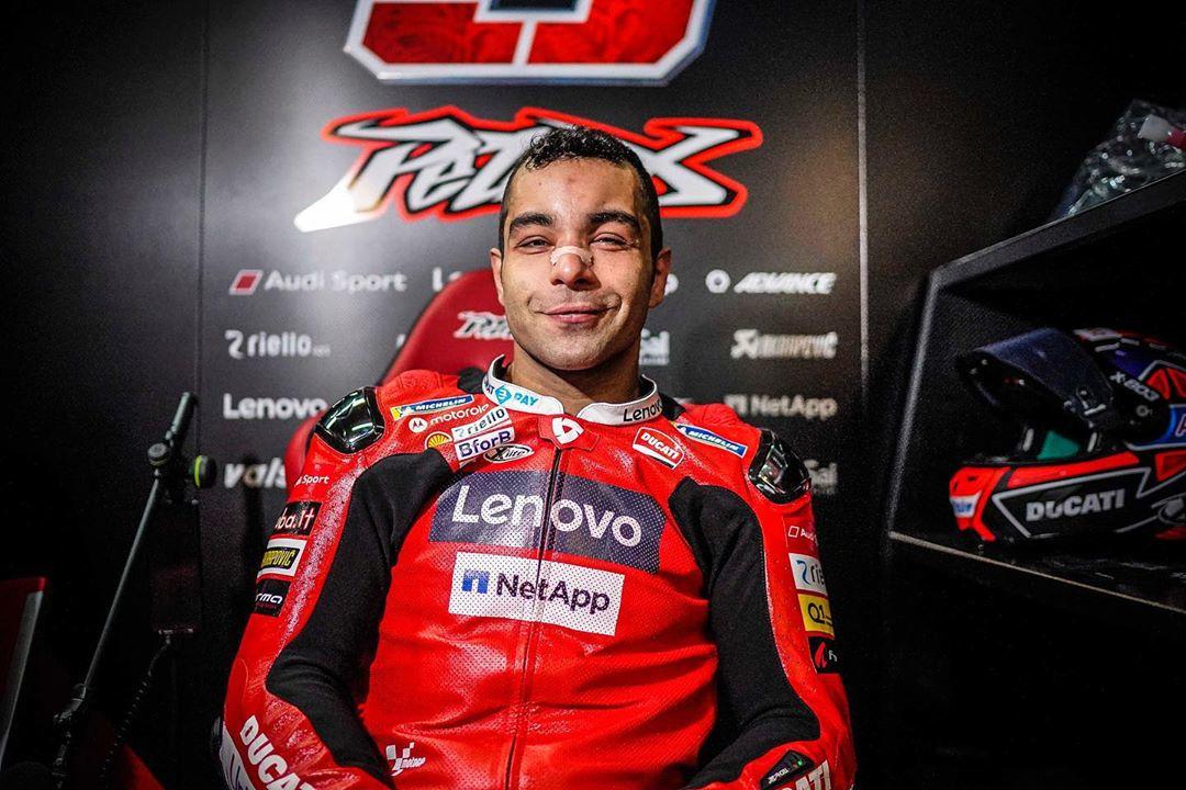 Данило Петруччи, победитель прошлого этапа MotoGP во Франции, сообщил в Инстаграмме, что кроме ужасного холода и сильного ветра его жизнь на ГП Арагона усложнил шершень! Итальянец выложил фотографию с распухшим лицом. И всё же в интервью заводской пилот Ducati отметил, что основная проблема заключалась не в жестоком насекомом.