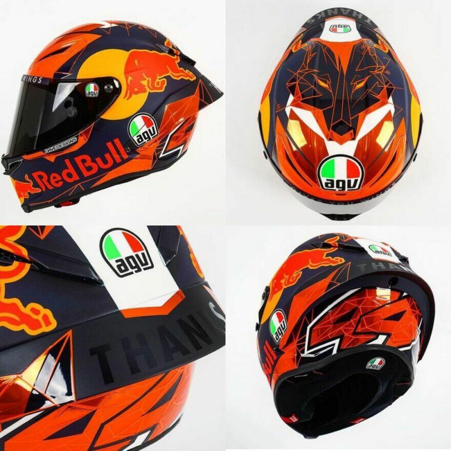 Испанские художники из Dave Designs слегка обновили ливрею его шлема AGV, чтобы сделать последнюю гонку с Red Bull KTM чуть более памятной. На затылочном спойлере у Эспаргаро написано Thanks («спасибо»). 29-летний каталонец провел в КТМ 4 сезона, за 63 старта он собрал 6 подиумов и 2 поул-позиции.