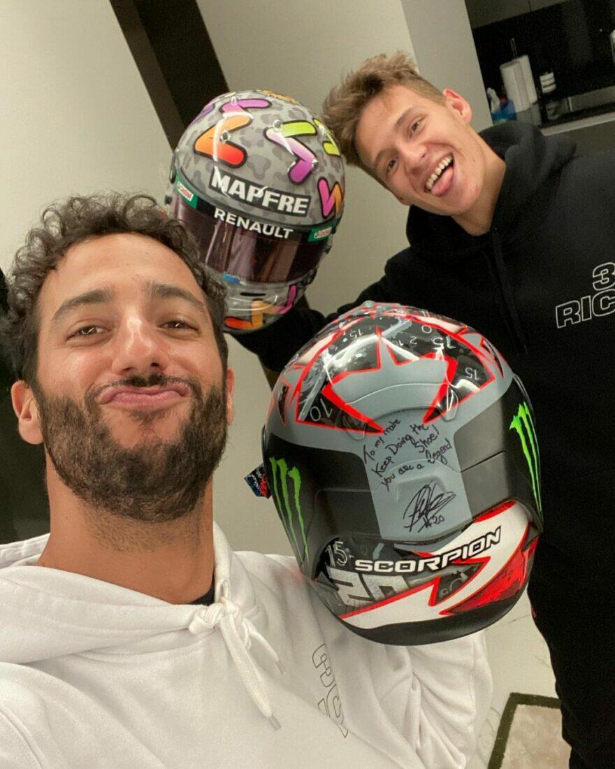 Махнулись шлемами с хорошим другом и ЛЕГЕНДОЙ @danielricciardo.