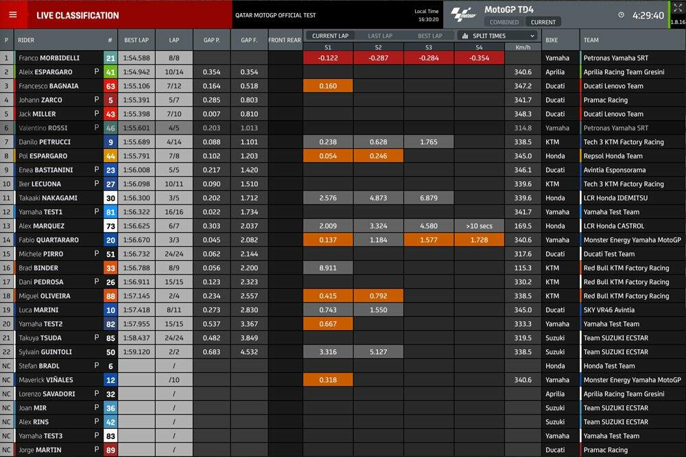 Промежуточные результаты четвёртого дня тестов MotoGP 2021 в Катаре (1/3)