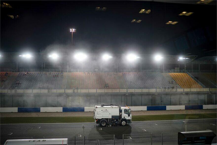 Примерно за 2,5 часа до окончания сессии её пришлось прервать красными флагами. На трек вышли маршалы со швабрами, выехала тяжелая уборочная техника, счищавшая/сдувавшая песок с асфальта.