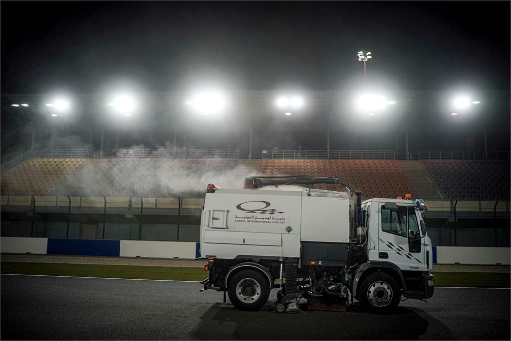 Примерно за 2,5 часа до окончания сессии её пришлось прервать красными флагами. На трек вышли маршалы со швабрами, выехала тяжелая уборочная техника, счищавшая/сдувавшая песок с асфальта.