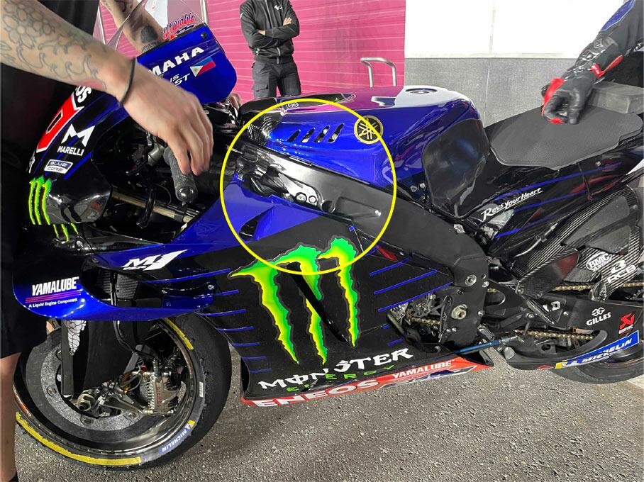 Самые заметные внешние отличия новинок — это более «щекастый» обтекатель с расширением по бокам от воздухозаборника, над каналами-выемками. И Росси, и Морбиделли отметили повышение максимальной скорости. Скорее всего, благодаря отведению потоков воздуха от рук на руле — это должно снизить сопротивление их довольно крупных тел.