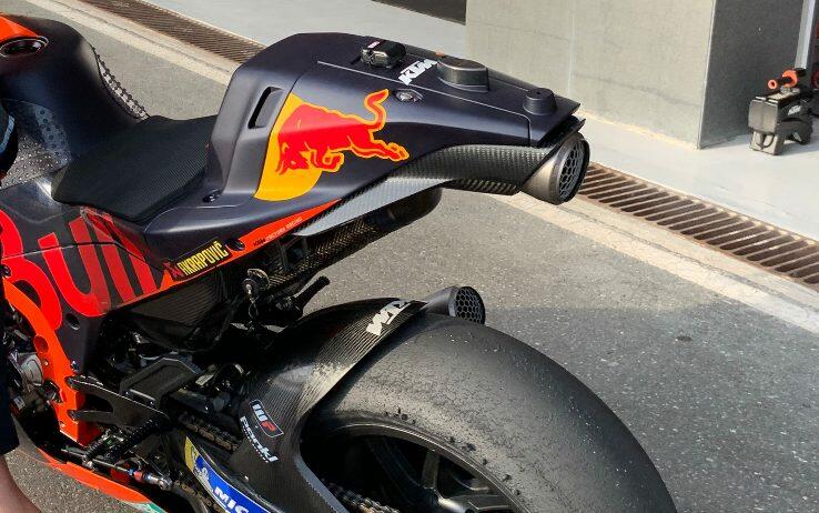 КТМ — единственный в MotoGP, кто для обтекателя перенял у Формулы-1 идею зубчиков для успокоения воздушных завихрений. Они разбивают беспорядочный поток на маленькие вихри и снижают аэродинамическую нагрузуку на руки и плечи ездока. Это вариант-2020.