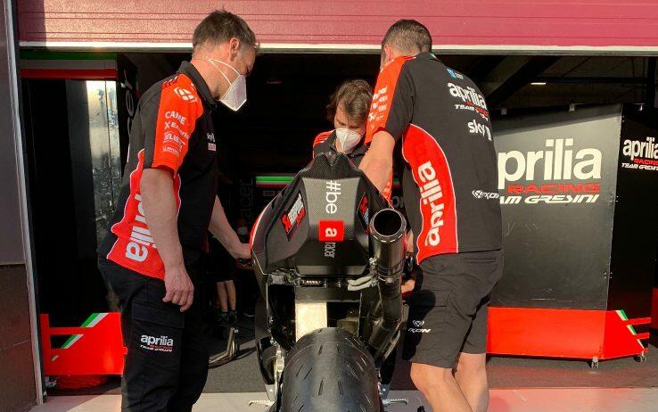 Подобно Ducati, Suzuki, Honda, KTM, с этого сезона у Aprilia тоже есть «полноприседающий» байк. Как и Suzuki, фабрика из Ноале добавила к передней поджимаемой вилке гидравлический, управляемый пилотом замок на задний моноамортизатор.