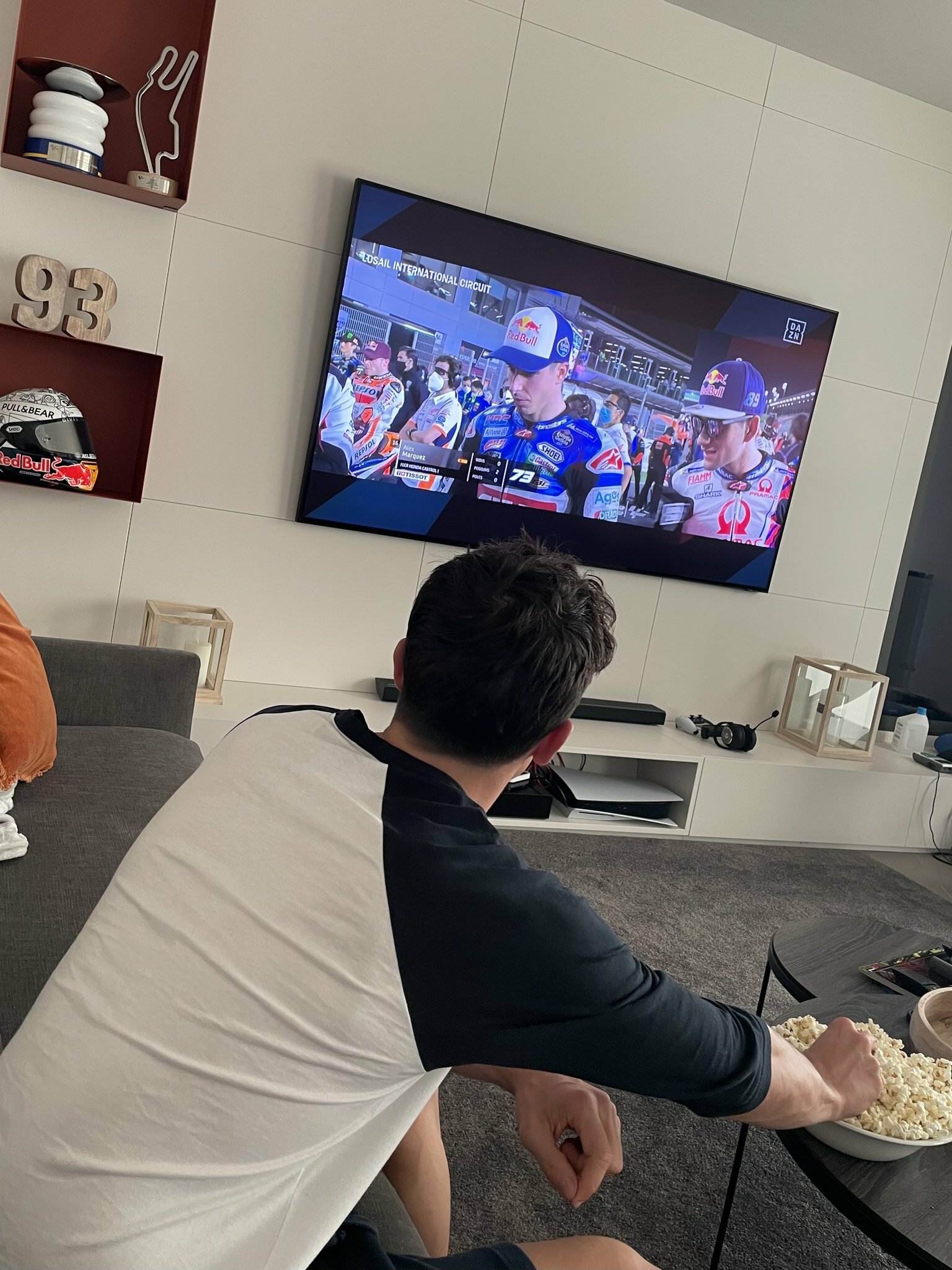 Перед стартом заезда он разместил в соцсетях фото со словами «Попкорн и MotoGP!!!», захватив кадр с братом.