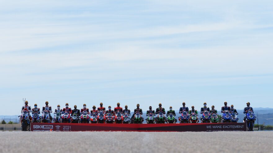 Наконец-то мы дождались старта чемпионата WorldSBK! Завтра гонщики выедут на трек в рамках первого этапа 2021 года. А сегодня организаторы провели фотосессию всех гонщиков: 23 в WorldSBK, 28 в WorldSSP и 42 в WorldSSP300.