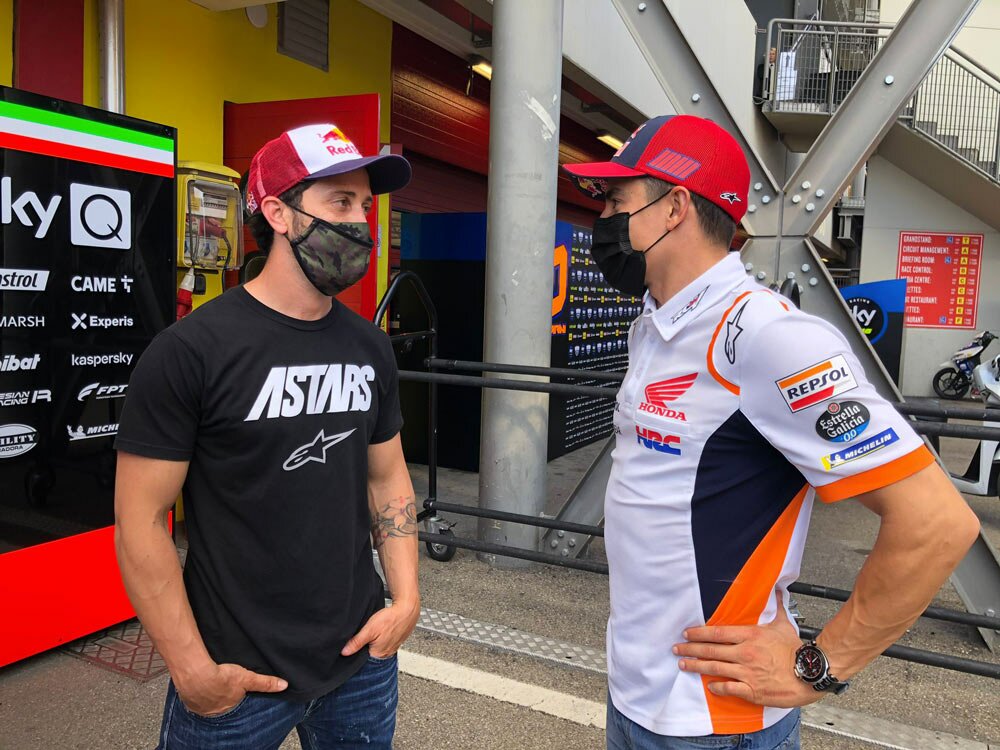 Андреа Довициозо поселился в паддоке MotoGP на ГП Ииалии, и даже пересёкся с главным врагом прошлых лет – Марком Маркесом. Ничего другого, кроме как вспоминать былые битвы, гонщикам на данный момент не остаётся – Дови проводит сезон без мотоцикла MotoGP, а Марк до сих пор восстанавливается после прошлогодней травмы и пытается найти былую скорость. Возможно, мы опять увидим захватывающие схватки между итальянцем и испанцем в следующем году, если Довициозо подпишет контракт с Aprilia, а Маркес окончательно восстановится.