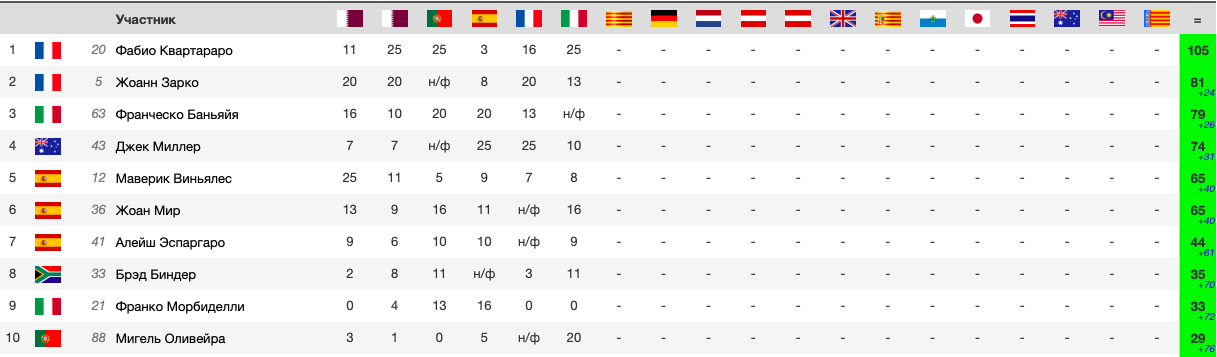 положение в чемпионате после гонки MotoGP Гран-При Италии 2021