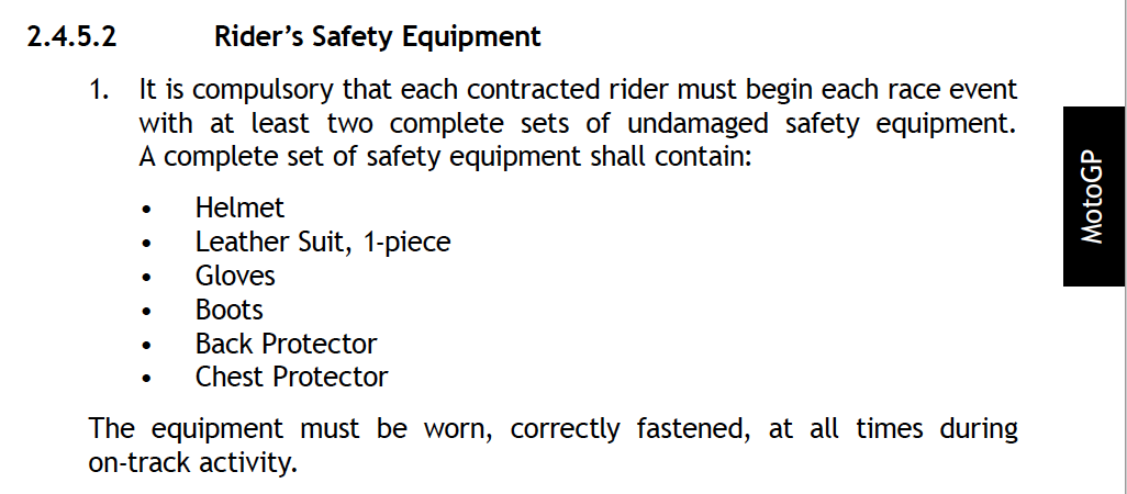 После окончания гонки Ducati и Suzuki потребовали объяснений от Гоночной Дирекции. В первом пункте статьи 2.4.5.2 регламента MotoGP четко указано, что пилоты обязаны быть полностью экипированы, то есть в шлеме, комбинезоне, перчатках, ботинках, с защитой спины и защитой груди. Последнюю деталь Фабио потерял при попытке застегнуть расстегнувшуюся молнию. Кроме того, «на трассе одежда всё время должна быть правильно застёгнута».