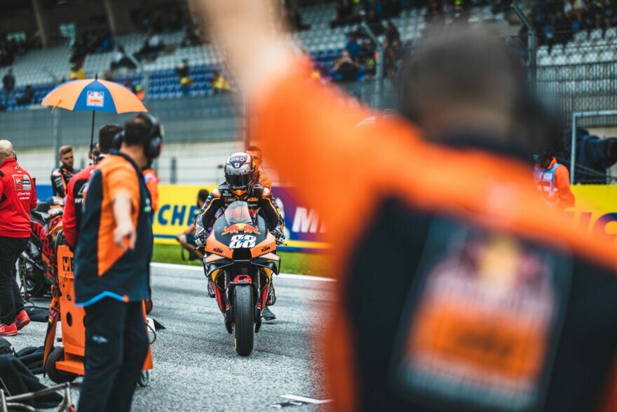 Впрочем, не только Оливейра выбрал эту шину. Его напарник Брэд Биндер с ней прорвался с 16 места на 4-е. Остальные пилоты КТМ — это Дани Педроса, Икер Лекуона, Данило Петруччи, — тоже взяли самую твёрдую шину для добычи времени на торможении.