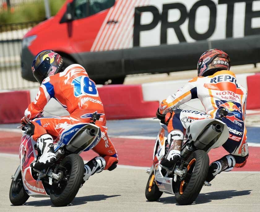 Джефф Лоуренс, чемпион AMA Pro Motocross MX250, бросил вызов Марку Маркесу и сразился с ним за рулем маленькой Honda NSF 100. Молодому австралийцу (родившемуся в 2003 году, на 10 лет моложе Маркеса) не удалось превзойти 6-кратного чемпиона MotoGP на асфальте, но он хочет провести матч-реванш на своём поприще!