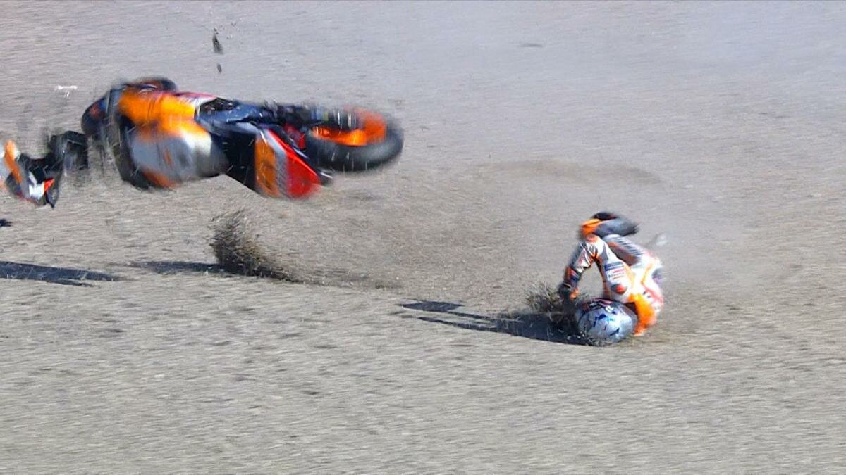 Видео ужасающего хайсайда Поля Эспаргаро, пилота команды Repsol Honda Team, во время третьей практики MotoGP Гран-При Валенсии 2021 года. Repsol Honda рискует остаться без второго боевого пилота. Сейчас Поль проходит обследование в госпитале. Возможны травмы ребра и грудной клетки…