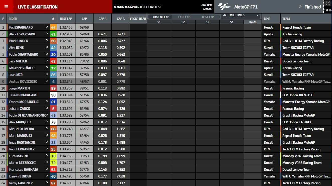 Результаты первого дня тестов MotoGP 2022 в Индонезии