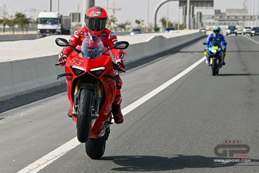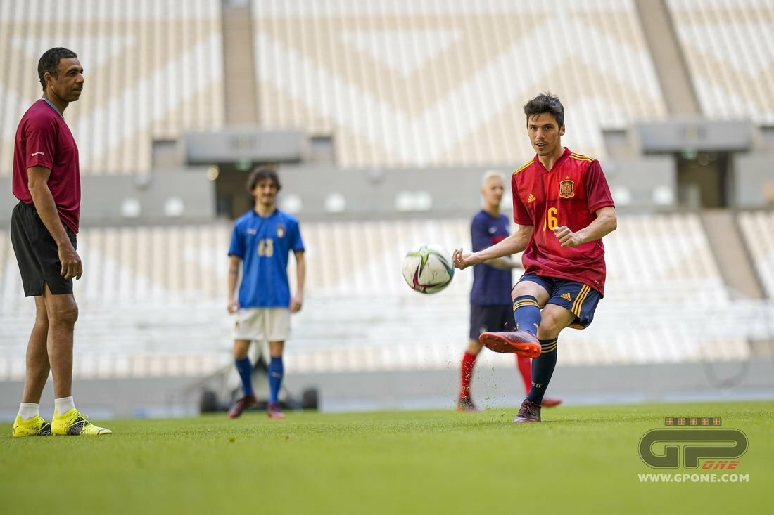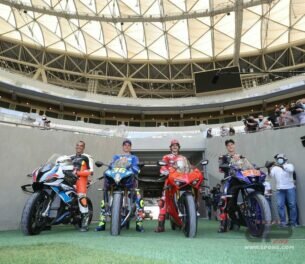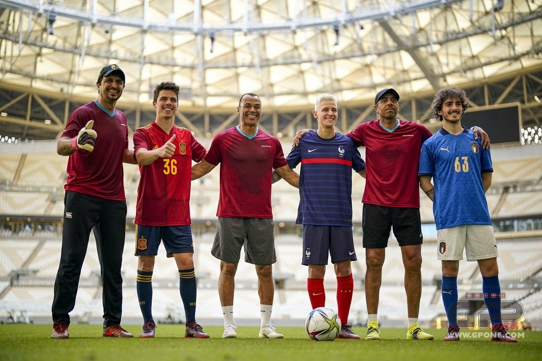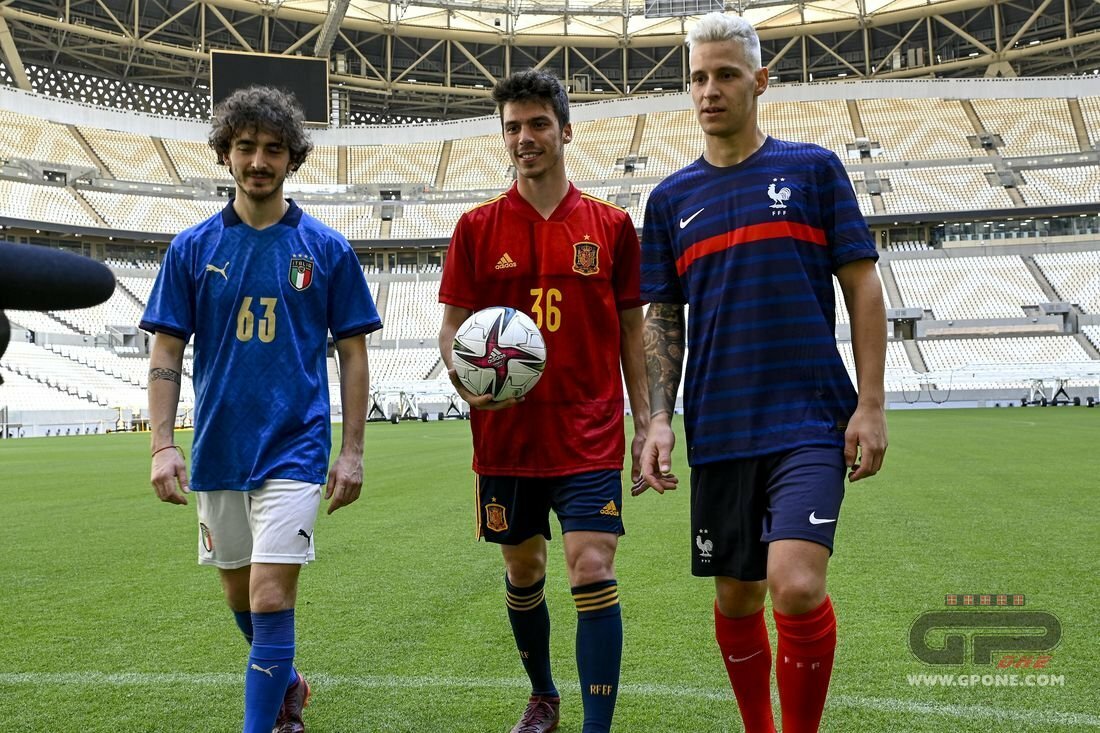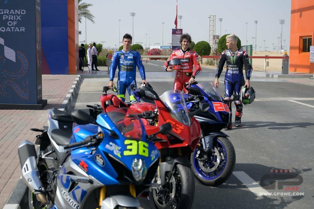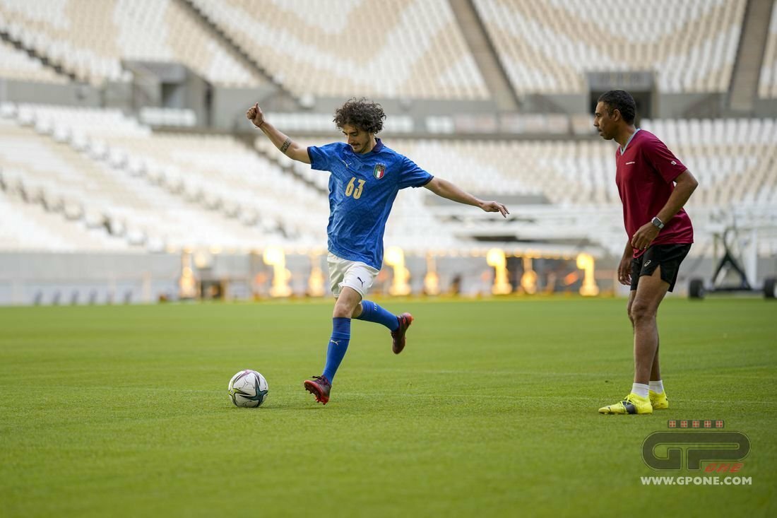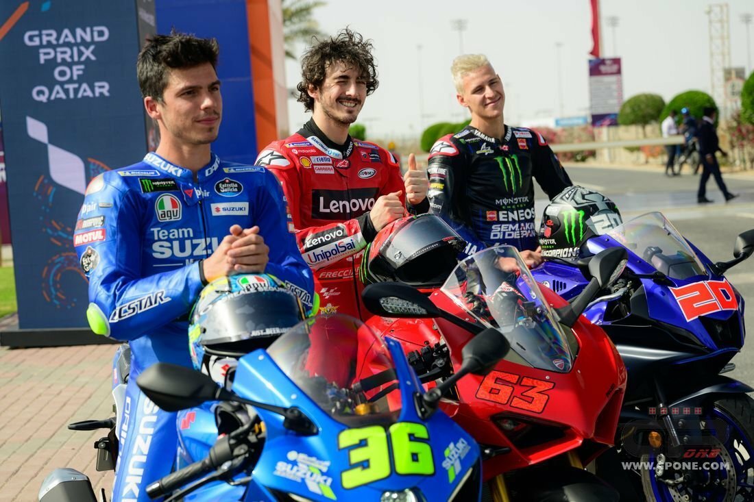 В этом году Катар примет чемпионат мира по футболу, и гонщики MotoGP не смогли устоять от предложения повеселиться на одном из стадионов, где будут проходить матчи. Баньяйя, Квартараро и Мир надели свой комбинезоны, натянули на голову шлем и отправились на своих железных конях на стадион Lusail Iconic Stadium. Сопровождал их специальный гость – бразильский футболист Кафу. Он тоже проехал на мотоцикле – BMW M 1000 RR.