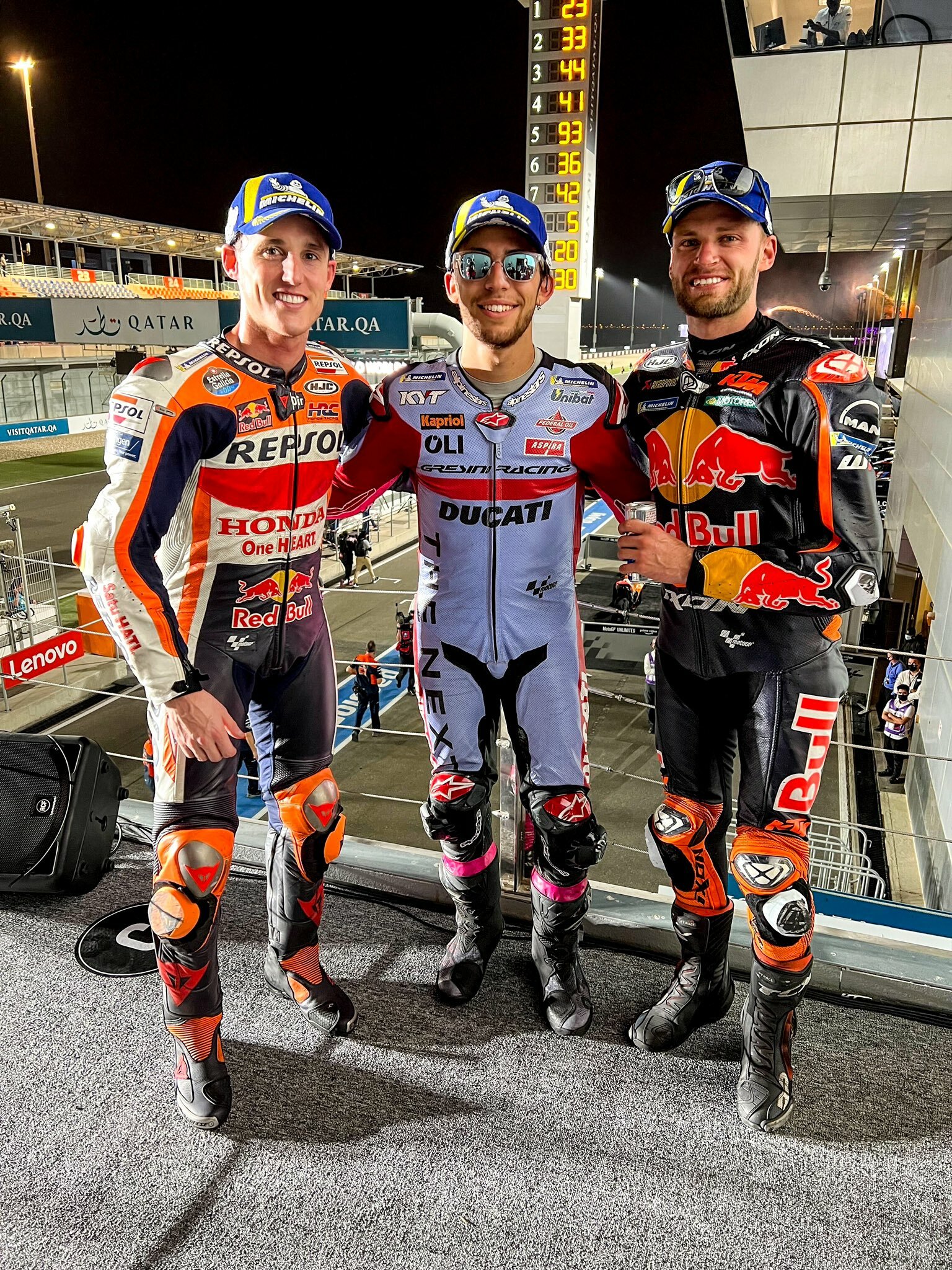 ГП Катара 2022: подиум MotoGP По итогам гонки MotoGP Гран-При Катара 2022 года на высшую ступень пьедестала поднялся 🥇 Эния Бастианини (Gresini Racing). Серебро завоевал 🥈 Поль Эспаргаро (Repsol Honda Team), бронзу – 🥉 Брэд Биндер (Red Bull KTM Factory Racing). Теги: MotoGP, подиум MotoGP, фотоGP Дата: 06.03.22 Источник: Все о мире Moto Редактор: Все о мире MotoGP