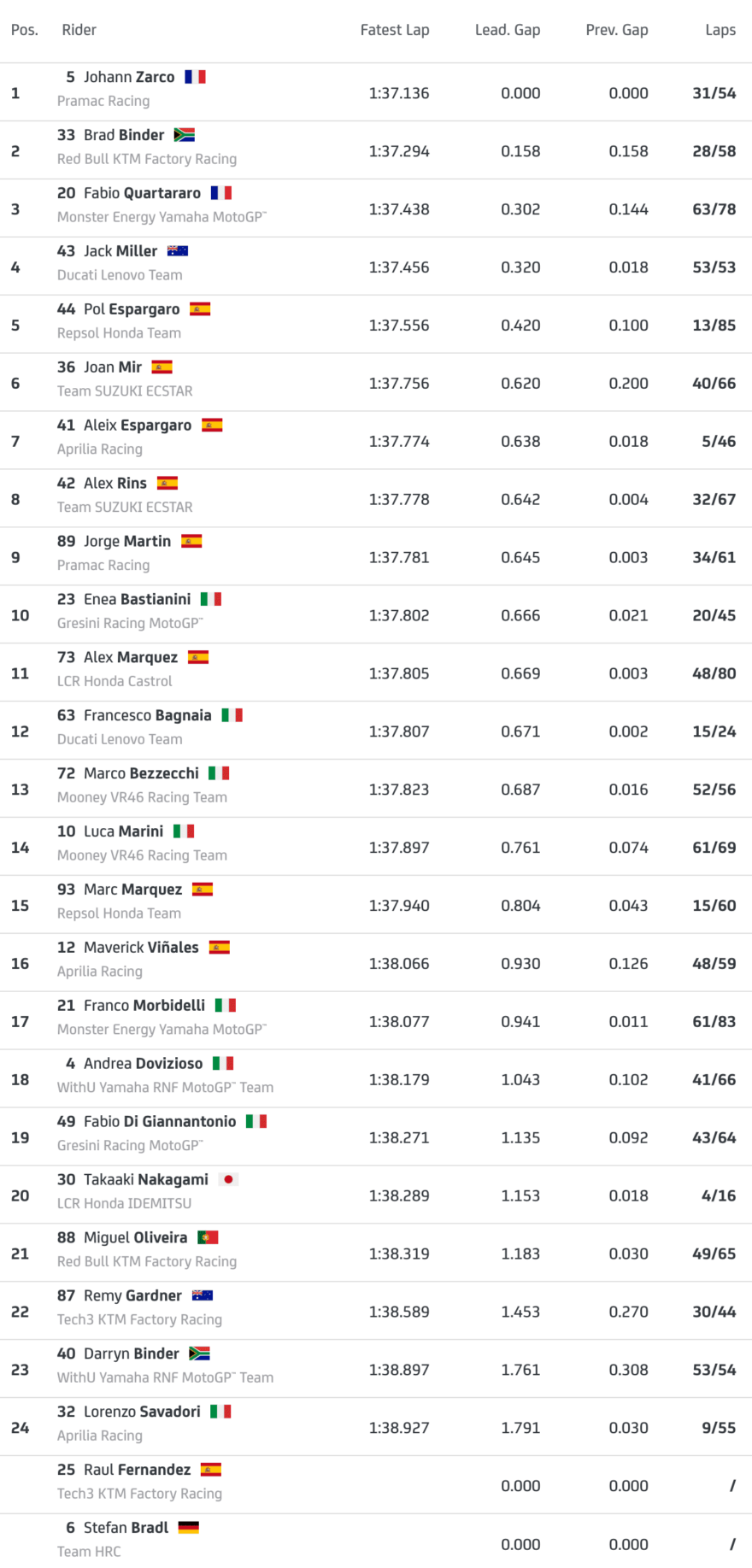 Предлагаем ознакомиться с окончательными результатами официальных однодневных тестов MotoGP 2022 на треке Херес-Анхель Ньето. После результатов таблица со схемой трека и актуальными рекордами.