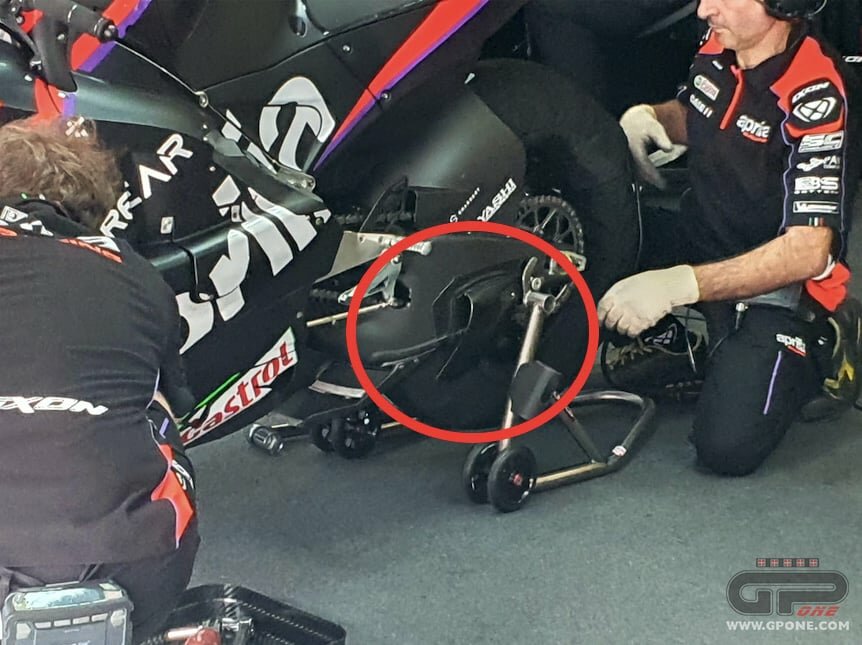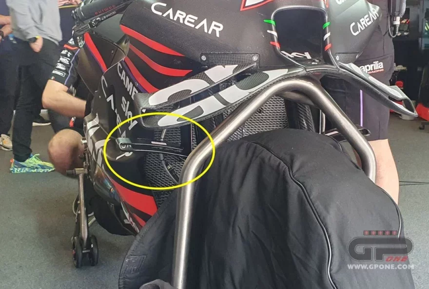 На современных байках MotoGP, казалось бы, осталось так мало свободного места, однако Aprilia всё равно смогла найти область для размещения новых аэродинамических элементов – на вилке!