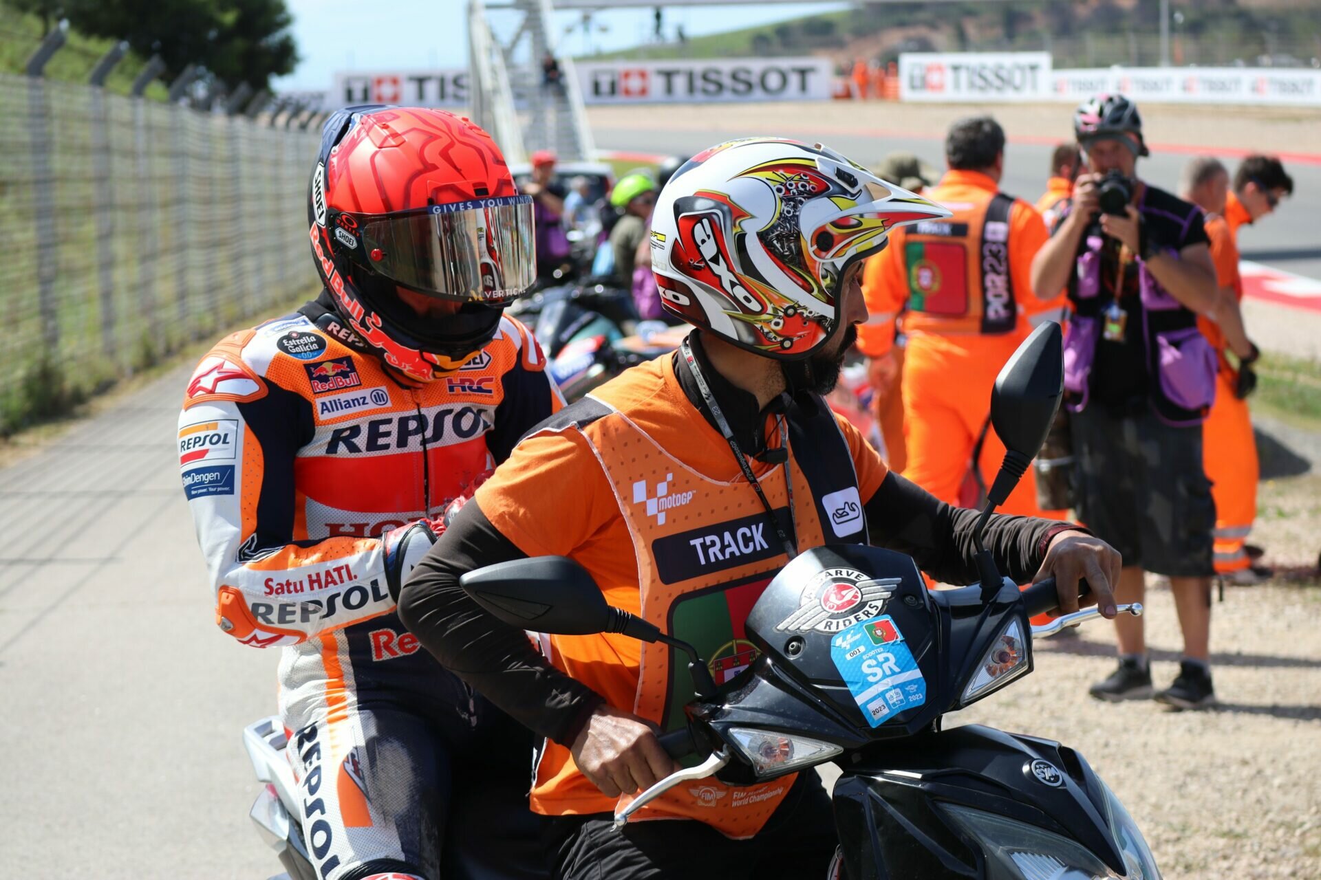 Сегодня Марк Маркес давал интервью с правым запястьем, перевязанным жёсткой повязкой. В столкновении с Мигелем Оливейрой и Хорхе Мартином, на самом деле, больше всего пострадал испанец из Honda. Сам Марк абсолютно не скрывает своей ответственности за случившееся.