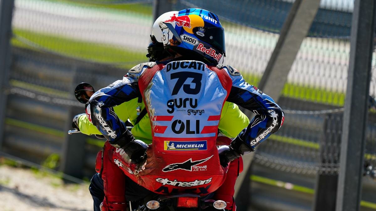 Моя нога застряла между обоими мотоциклами, и я также коснулся стены. Так что это была непростая авария. Но я злюсь, потому что сегодня мы потеряли много очков. Это была хорошая возможность.