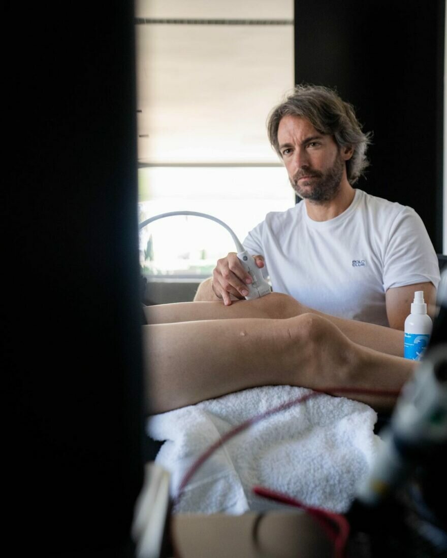С помощью УЗИ мы увидели, что после удара в воскресенье произошел разрыв латеральной широкой мышцы четырёхглавой мышцы и растяжение связки.