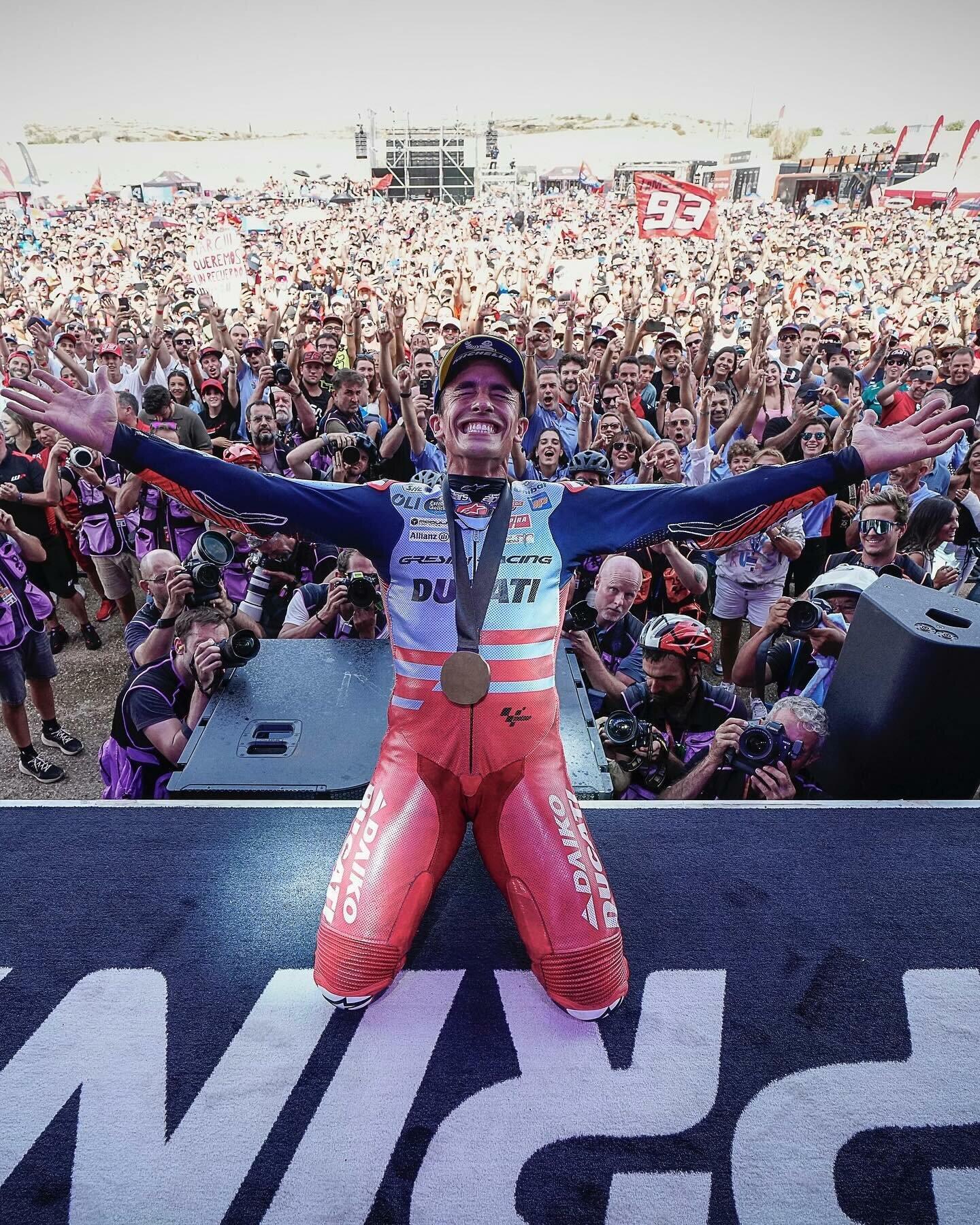 На вершине подиума Марк Маркес танцует под ритмы техно-музыки в знак празднования. Это тот же самый ритм — точный и завораживающий, — который он задал на трассе Арагона. За три дня на Арагоне он не допустил ни одной ошибки – он был безупречен. Именно это было необходимо, чтобы прервать 1043-дневную засуху без побед, которая, наконец, закончилась сегодня его 60-й победой в MotoGP.