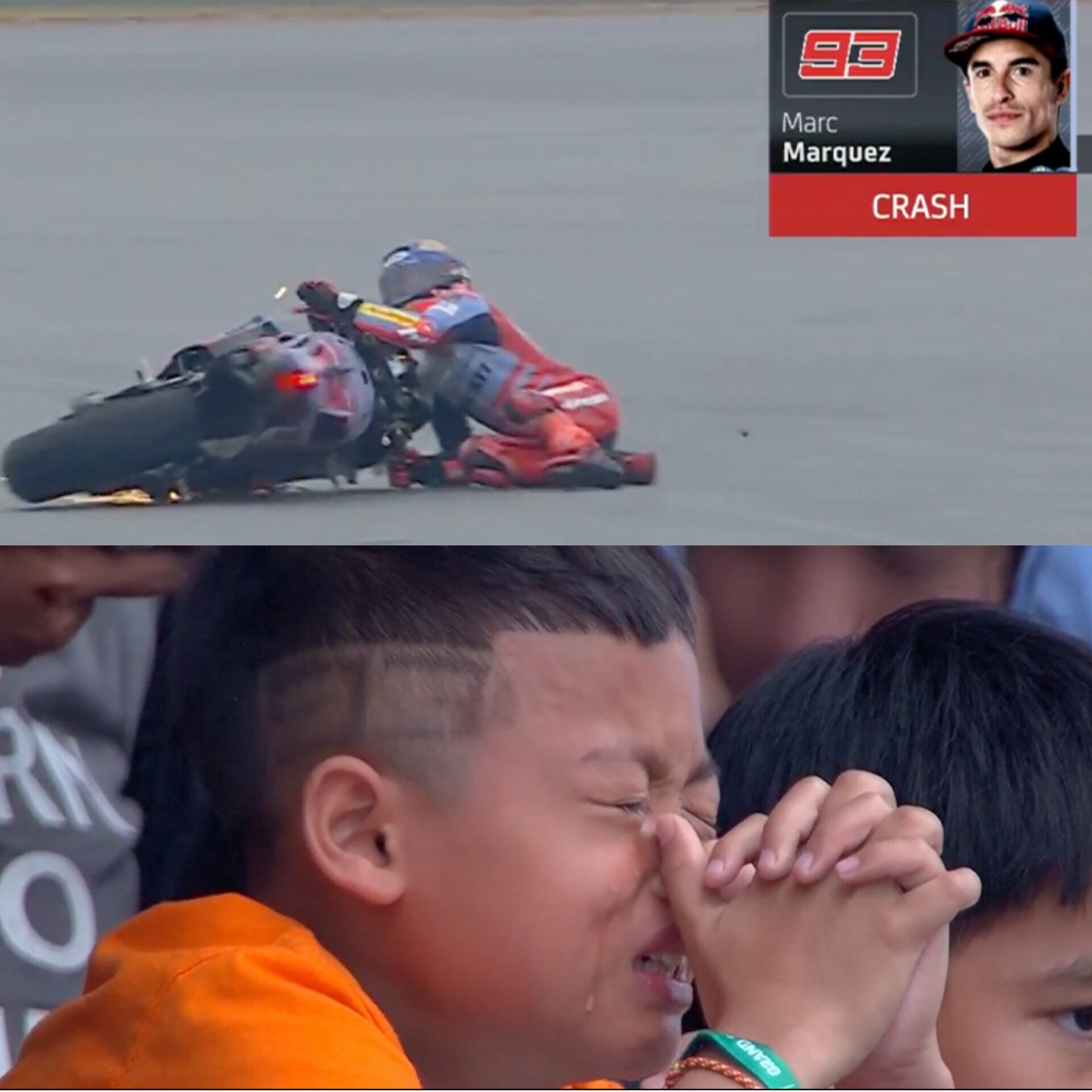 В прошлом году миллионы зрителей MotoGP были растроганы искренними эмоциями юного тайского фаната Марка Маркеса – мальчик не смог сдержать слёзы, когда его кумир выбыл из борьбы за победу из-за собственной ошибки. Но в этот раз Марк его не подвёл, забрал хет-трик и привел пацана в закрытый паддок на радость местной публики!