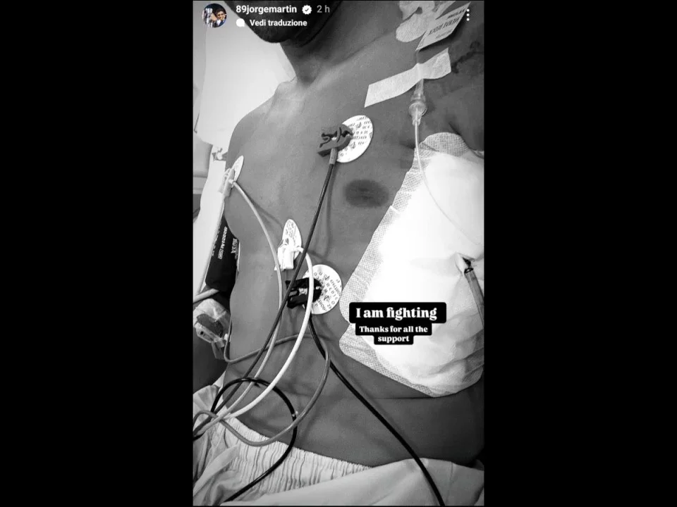 Таков последний пост Хорхе Мартина в одной никому неизвестной мелкой вражеской социальной сети с фотографиями. Он сопровождает сообщение чёрно-белой фотографией из больничной палаты — на снимке хорошо видно дренаж, установленный в лёгкое. Пилот Aprilia всё ещё находится в Катаре, в госпитале Хамад, куда его доставили после серьёзной аварии во время Гран-При.