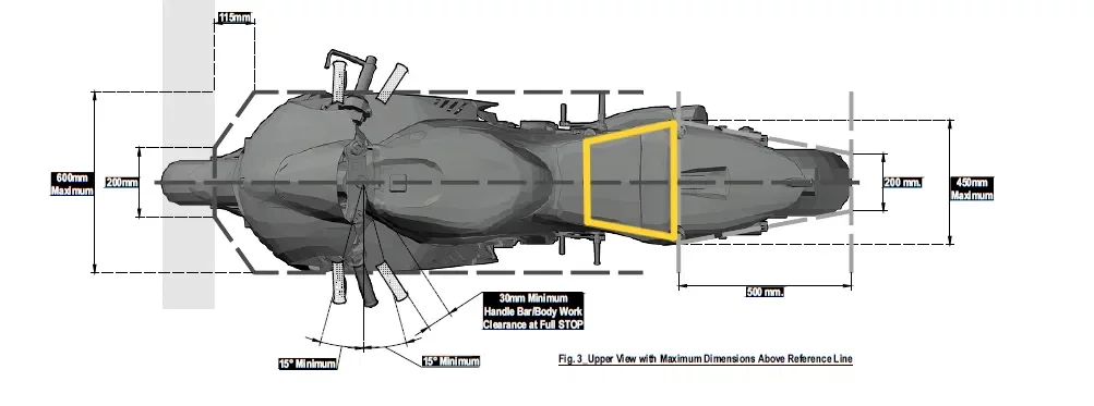 Предложение вводит новую «зону исключения» для обтекателей, расположенную вне сужающейся области, начинающейся за 800 мм до задней покрышки, шириной 300 мм и простирающейся назад до нынешнего максимального предела в 450 мм (на расстоянии 500 мм от покрышки).