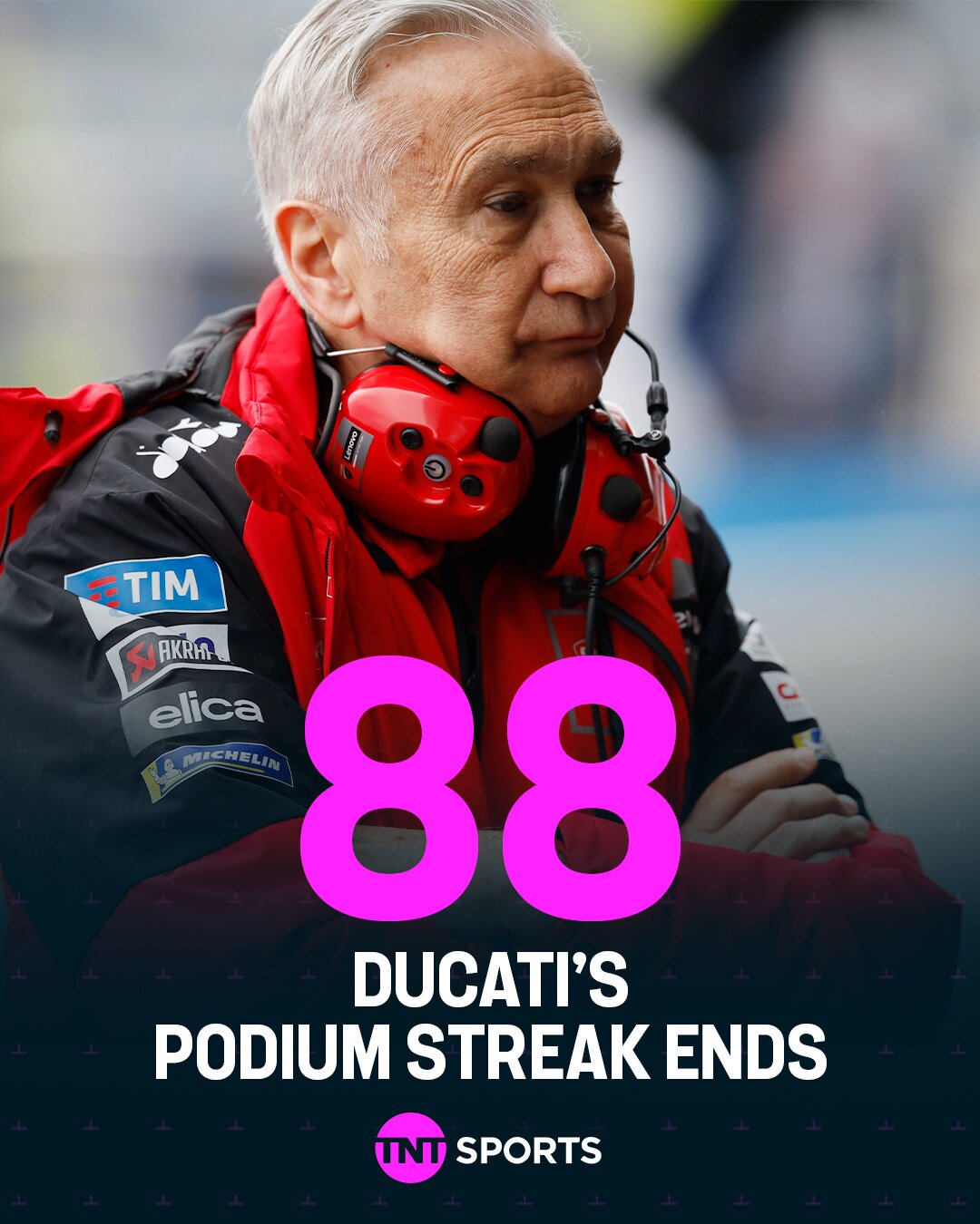 Прокол задней покрышки на мотоцикле Марка Маркеса на 22-м круге воскресной гонки MotoGP Гран-При Таиланда 2026 автоматически привел к прерыванию легендарной подиумной серии Ducati. Без Марка никто из Ducati сегодня не был способен вознести свою Desmosedici в топ-3. Рекордная серий подиумов в воскресных гонках прервалась на числе 88.